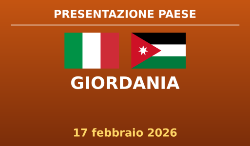 Il Ministero degli Affari Esteri e della Cooperazione Internazionale, l'ICE-Agenzia e l’Ambasciata del Regno Hashemita di Giordania in Italia organizzano la Country Presentation di alto livello dedicata alle opportunità di investimento in Giordania, che si svolgerà il 17 febbraio 2026, dalle ore 14.30 alle ore 17.00, presso la sede dell’ICE-Agenzia sita in Via Liszt, 21- Roma.